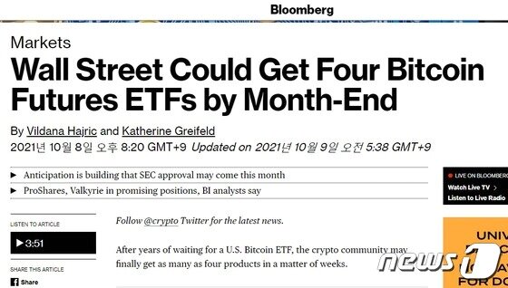 나는 이번에는 미국 비트코인 etf 승인이 연기될것 같지는 않다. 미국 증권거래위원회SEC의 비트코인 상장지수펀드ETF 승인이 임박했다는 기대감이 그 원인으로 해석된다. 캐나다 세계 최초 비트코인 etf 거래 첫날 1800억 원 거래.